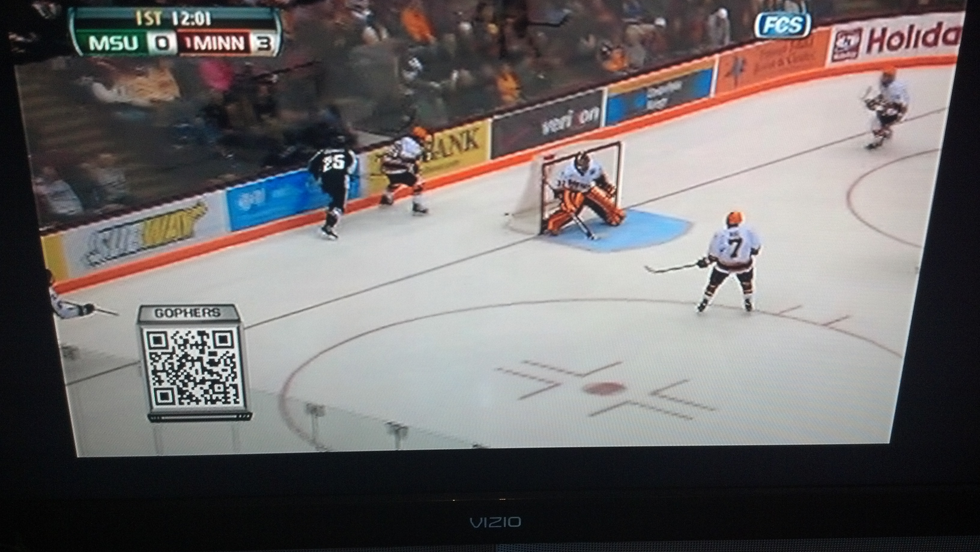 • Kudos to Fox Sports North for finding the best use I have seen for the QR code, often a technology-for-technology’s-sake marketing tool. Fans can scan the code on the screen to watch game highlights. Maybe someone else has done this, but I hadn’t noticed it.