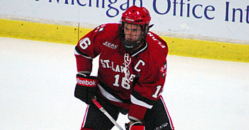 • As I mentioned Friday, two teams from ECAC Hockey’s bottom half last season opened the new year with wins against last year’s best teams in the CCHA. Defending CCHA tournament champion Western Michigan bounced back from Friday’s loss to St. Lawrence with a 3-2 win in which the Broncos held a 49-12 shots advantage. The Saints, though, led by a goal with 12 minutes left and got four weekend points each from the dynamic duo of Kyle Flangan and Greg Carey. All in all, it was a pretty good weekend for SLU. Rensselaer, meanwhile, followed up Friday’s win against defending CCHA champion Ferris State with a 2-2 tie Saturday. Jacob Laliberte tied the game with his third goal of the weekend just 24 seconds after Brandon Anselmini gave the Bulldogs a third-period lead.