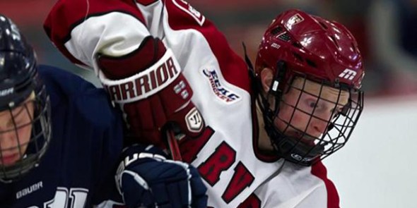 Mike Seward’s second career goal turned the tide back in Harvard’s favor and held up as the game-winner • Harvard Athletics/Kevin Burns photo